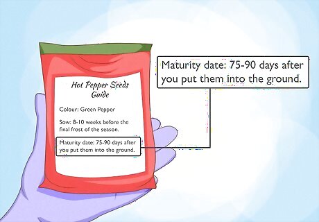 Harvest your peppers at the earliest “maturity” date on the seed packet. Most seed packets list a date when the plants are considered mature and are ready to be picked. If you harvest the peppers at the earliest date listed, the plant yields more peppers. A general guide is 75-90 days after you put them into the ground.