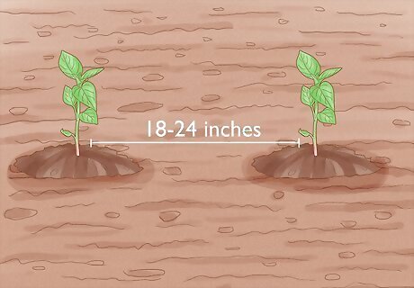Bury the pepper plants 18 to 24 in (46 to 61 cm) apart in the same row. As the pepper plants continue to grow, they will spread their leaves out. Because of this, it’s important to plant them far enough apart for them to expand.