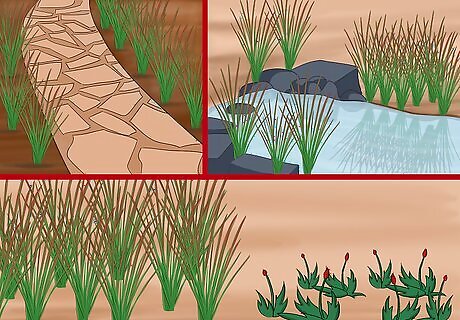Consider ways to arrange it. Japanese blood grass looks excellent edging garden beds or paths. It also works well next to ponds, water features and streams. If you want it to be a feature, tone down the plants around it; if it is to serve as a backdrop, plant a lot of blood grass together.