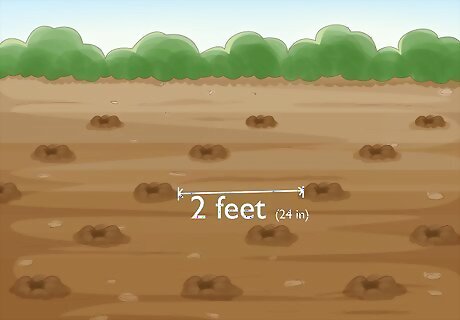 Put 2 feet (24 in) of space between each row of seeds. If you’re planting multiple rows of pigeon peas, leave enough space between them so they won’t get overcrowded as they grow. The extra space between rows will allow you to harvest the peas more easily, too. If you have to plant the rows closer together, try to stagger the placement of each seed so that there is as much room as possible between each one. For example, in row 1, you could plant a seed at 1 inch (2.5 cm) and 5 inches (13 cm), and in row 2, you could plant a seed at 3 inches (7.6 cm) and 7 inches (18 cm).