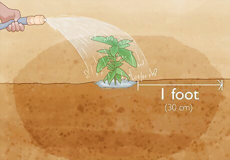 Water the salvia plant until the soil is saturated. Pull out a garden hose or watering can and water around the base of your salvia bush. The first time you water your salvia plant, saturate the soil at the base of the plant and at least 1 foot (30 cm) on all sides. Stop watering the plant before a puddle begins to form around its base.