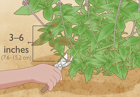 Prune bushy salvia plants in spring to remove dead and dying branches. Gardeners prune salvia bushes mostly for aesthetic reasons and to remove dead branches. If your salvias lost some branches and stems over winter, snip these off with a pair of pruning shears. Unlike other flowering plants (e.g., roses), salvia bushes do not need to be aggressively pruned. Gardeners typically need to prune only 3–6 inches (7.6–15.2 cm) at a time. Trimming your salvia plants in early spring (before the growing season starts) ensures that you won’t remove any new growth.