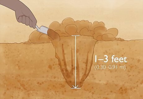 Use a shovel to dig a hole 12 inches (30 cm) deep. The hole should be twice the diameter of the plant’s roots to ensure that the salvia bush will not be cramped once it’s planted. If the roots are only 4–6 inches (10–15 cm) deep, you don’t necessarily need to excavate a full 12 inches (30 cm) of soil. But, at least use your shovel to loosen up the soil to that depth. If you’re not sure of the size of the plant’s root bundle, you can estimate by looking at the size of the container that the plant is in. If you’re planting multiple salvia bushes, space them out by 1–3 feet (0.30–0.91 m) so that their roots don’t overlap underground.