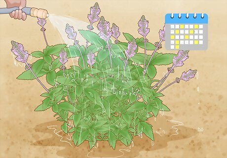 Water the salvia plant 1–2 times a week during dry periods. Salvia plants are drought-resistant, meaning that, as long as it’s receiving rain (or other precipitation) at least 2–3 times a month, you may not need to water your salvia plant at all. If you’re experiencing a dry spell, however, water the plant once or twice a week. Don’t quite saturate the soil, but water until it’s very damp. If you see the leaves of your salvia plant start to turn yellow, you’re overwatering the plant. Hold off watering the salvia again until its leaves have returned to a healthy green.