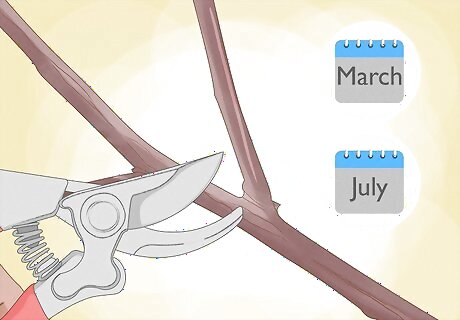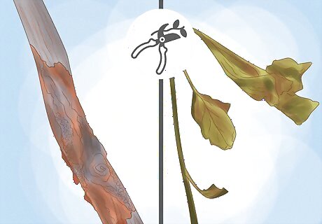 Remove dead or damaged branches. Cut off dead blooms or branches during blooming season, which takes place from March to July. Trimming dead growths from the plant will make the branches grow back healthier and bushier. Use a sharp pair of gardening shears to cut off the damaged section.