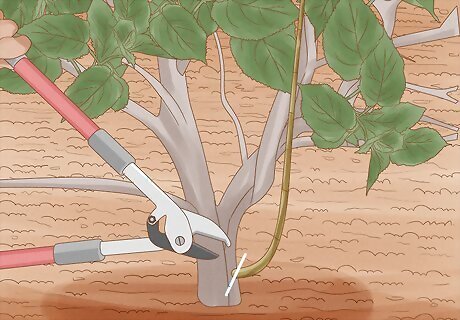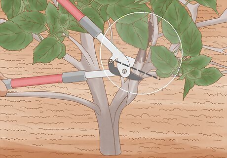 Remove suckers close to the base of the tree. Suckers are offshoots of the snowball tree that look like thick branches growing on ground level. Because suckers are offshoots of the tree, they cause the tree to divide its nutrients and resources between the main part of the tree and the suckers. Use pruning shears to cut the sucker cleanly close to where its base meets the tree. Removing suckers allows the tree to retain all of its nutrients, making it much healthier.
