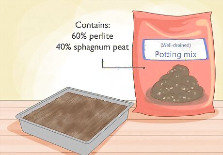 Prepare a seedling flat with potting mix. Purchase a seedling flat with drainage holes in the bottom to plant your cuttings. Fill the flat with a well-drained potting mix that contains around 60% sand or perlite and 40% sphagnum peat.