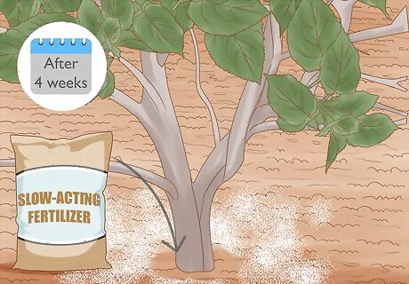 Use slow-acting fertilizer about four weeks after planting. Reinvigorate the soil by sprinkling a slow-acting fertilizer around the snowball tree a month after you’ve put it in the ground. Slow-acting fertilizer delivers nutrients over a long period of time to keep your plant healthy.