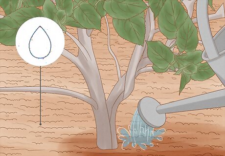 Water when the soil is dry. Check on your plant every week or so. If your area is experiencing a drought or has had very little rain, water your snowball tree. This is especially important when your tree is young and delicate. Be sure to water at the base of the plant instead of over the top of the plant. Watering at the base ensures that the roots absorb the water.
