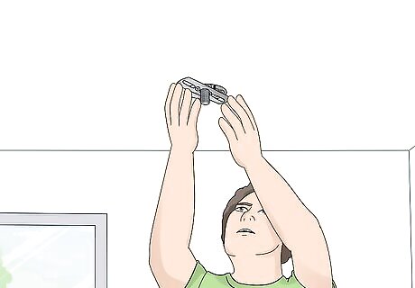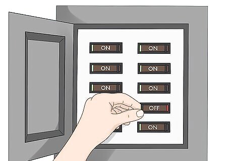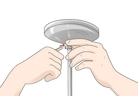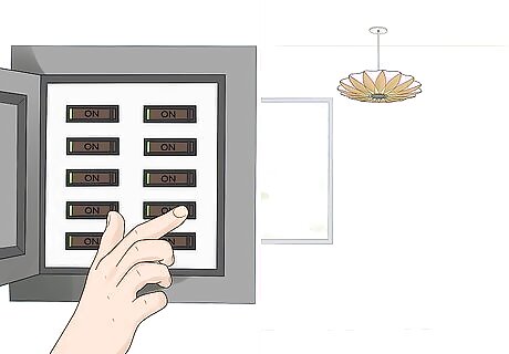 Turn off the circuit breaker that powers the room. Find the circuit breaker box in your home and use the diagram on the inside panel to identify the breaker that controls the flow of power to the room where you plan to install your lamp. Flip the breaker in the opposite direction to turn it off. Try to turn the lights on in the room before you start working to make sure the power is off. Use a headlamp or open up curtains to let in natural light to help you see while you’re working.Warning: Make sure you’re absolutely certain the power has been turned off before you work to prevent shocking yourself.