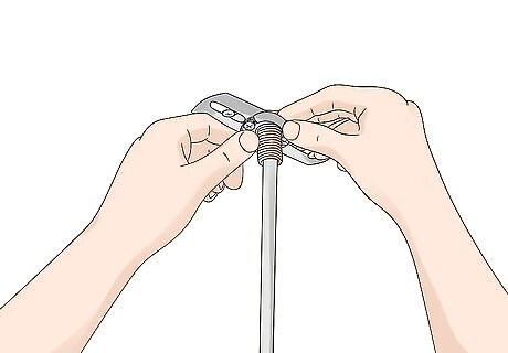 Secure the cables by tightening the clamp bar with a screwdriver. Once you’ve wrapped the extra light cable around the fixture, slide the clamp in place over the cable. Use your screwdriver to retighten the screw on the clamp bar so the cable is held firmly and securely. The clamp bar also helps support the lamp itself as it hangs and keeps tension off of the wire connectors.