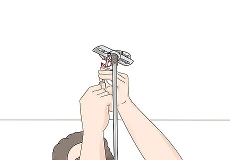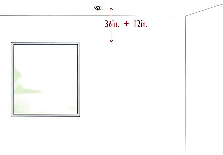 Measure the length you want the light to hang and add 12 inches (30 cm). Choose a distance that you want to the Nelson lamp to hang down from the ceiling, such as 36 inches (91 cm) or 72 inches (180 cm) for a high ceiling. Add an additional 12 inches (30 cm) to your measurements to account for the extra length of cord that needs to be used to connect the wiring and be installed in the ceiling cup. Use a shorter measurement for lower ceilings so the lamp doesn’t hang at head level. If you’re hanging the lamp above a table, try hanging the lamp so it’s about 28–32 inches (71–81 cm) from the surface of the table so it provides light but isn’t in the way.