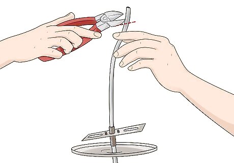 Mark the length on the light cable and cut it with wire cutters. Take your measurements and use a pencil or marker to make a small marking on the light cable the distance from the end of the cable that matches the length of your measurements. Then, take a pair of wire cutters and snip the wire where you marked to trim it down to size. Use wire cutters for an even and clean cut across the cable.