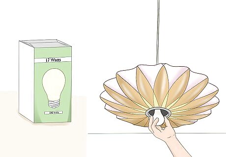 Install a 240-volt compact florescent lightbulb into the socket on the lamp. Take a new 240-volt fluorescent bulb and wipe it with a clean cloth to remove any oils or residue from the surface. Fit the end of the bulb into the socket and rotate it clockwise to install it into the lamp. Continue turning until you can’t turn it anymore. Only compact florescent bulbs will fit into your Nelson lamp. You can find 240-volt compact florescent lightbulbs at your local home improvement or hardware store, or by ordering them online.