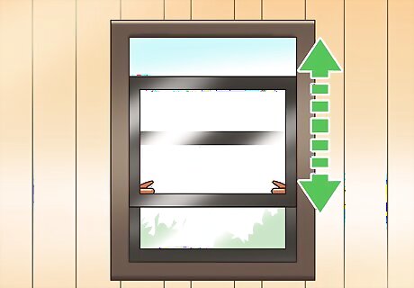 Open the window and push the wreath through it. You only need to open the window wide enough to fit the wreath through—about 1 foot (30 cm) will be enough for most wreaths. Be sure to hold onto the ribbon tightly so that you don't drop the wreath. You are hanging the wreath on the outside of the window. If you want the wreath to be on the inside, you will need to get out a ladder, and work from the outside of your home.
