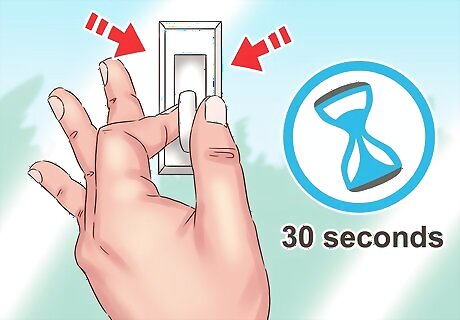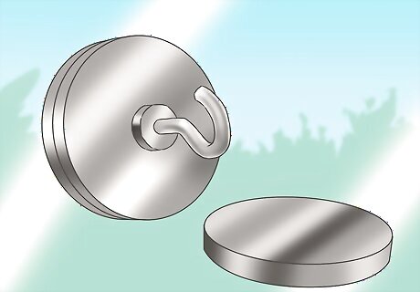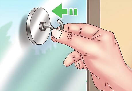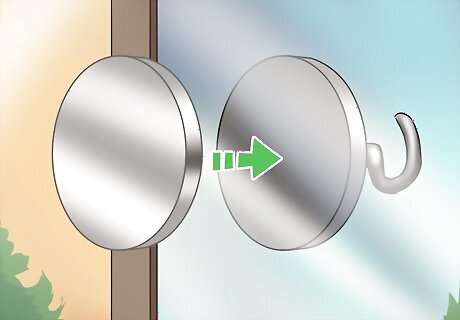 Place the other magnet against the other side of the window. The magnets are very strong, so the two halves will attract each other through the glass. If you taped the first magnet to the glass in the previous step, you can remove the tape now. If the tape left some residue, wipe it off with some white vinegar or an adhesive remover (i.e.: Goo Gone). The magnets have a protective coating, so they should not scratch the glass.