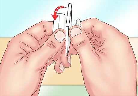 Remove the liner on the back of your command hook's adhesive strip. Find the side of the strip that has the black-and-white liner. If you can't find it, look for something that says "window." Peel the liner off, and leave the other one in place. Be careful not to touch the adhesive. The more you touch it, the less tacky it will be.