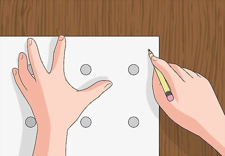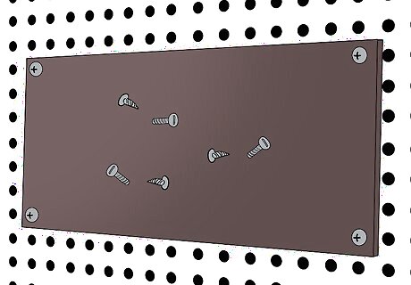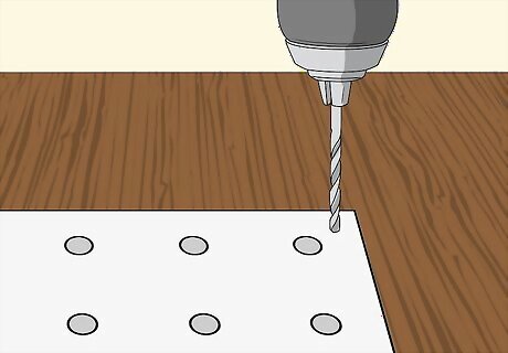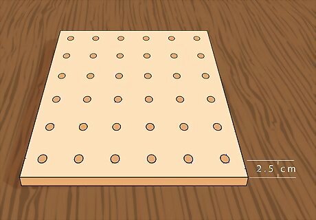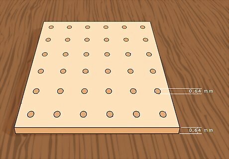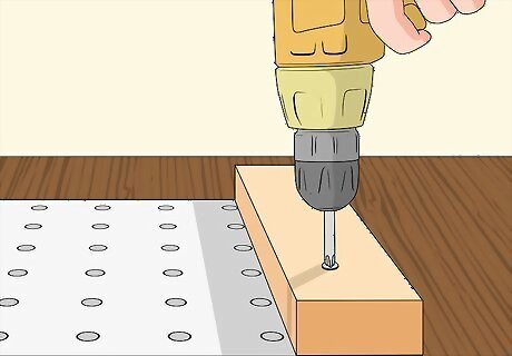 Place the board against the wall, then mark the holes with a pencil. Hold the pegboard against the wall where you want it to go. Next, have someone hold the board in place while you mark the holes in the board with a pencil. Use a level to ensure that the board is straight. If your wall has studs in it, make sure that you are placing the holes over the studs. If you can't fit a pencil through the holes, dip a skewer into paint, then poke it through the holes. Don’t worry, the wall anchors will cover the paint.