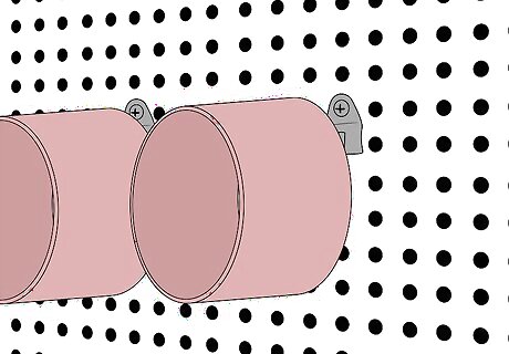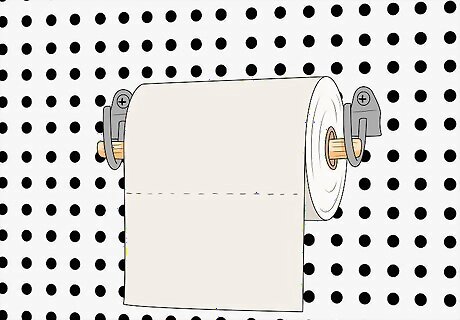 Use dowels to hold rolls of paper. Hang 2 short peg hooks on your pegboard. Next, slide your roll of paper onto a ⁄2 in (1.3 cm) wooden dowel, then set the dowel on top of the peg hooks. Hang the hooks so that they are narrower than the roll of paper. The dowel needs to be a little longer than the roll of paper.