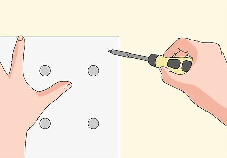 Add a magnetic board to store small screws or post notes. Secure a magnetic sheet to your board with screws or pegboard hooks. Use magnets to attach notes to your board. You can also pop other magnetic items, such as small screws or tools, onto the board as well. For a fancier board, cover the magnetic sheet with printed vinyl, contact paper, or shelf liner.