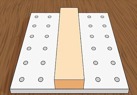 Use masking tape to create a box the same size as your board. Measure your pegboard first, then use masking tape to create a rectangle on your workbench that matches your board's measurements. For example, if your board is 2 by 4 feet (0.61 by 1.22 m), make your rectangle 2 by 4 feet (0.61 by 1.22 m).