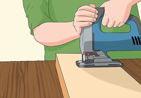 Use a jigsaw or a circular saw to cut the board. If you are using a jigsaw, keep the board facedown on the workbench. If you are using a circular saw, keep the board face up, otherwise you may get tears. Alternatively, you can ask the hardware store to cut the board for you, but be aware that they may charge you.