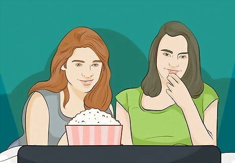 Watch movies and eat plenty of healthy popcorn. Watch a movie, funny video whatever anything that is on the TV or computer.
