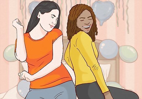 Play Truth or Dare, Would You Rather, or similar games. Just have fun with it! For a fun game of Truth or Dare, give each girl a piece of paper and have her write down as many truths and dares she can think of. Put all the truths in one box or hat, and dares in another. Then have the person up pick one out of the desired container. Some other games to try include: Sardines: This is like hide and seek, but in the dark. One person hides, and the rest of the people count. When you're done counting, go look but when you find her, don't say a word. Hide with her and it will eventually even down to the last person! Sleeping Beauty: Don't worry, there is no kissing involved. Basically, one person lies down on the floor with her eyes closed, and everyone else has to make her laugh. When she laughs, the person who made her laugh takes her place.