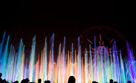 Plan way ahead for World of Color. If you'd rather see Fantasmic or the fireworks, see the shows section above for how to do so in Disneyland. World of Color shows exclusively in California Adventure, with two shows a night during peak season and only one during the off season. If you'd like to see World of Color, though, here's a guide to both general seating and dining passes: Get a fastpass for general seating. World of Color seating is divided into different areas by (you guessed it) colors, and the color for your area will be printed on your fastpass. Grab everyone's park tickets, head over to The Little Mermaid; Ariel's Undersea Adventure to the World of Color fastpass machines, and get a ticket for each separate person. If the same color is on each fastpass, you're good to go. About an hour before world of color starts, head to the general seating area on Paradise Park, where a cast member will direct you to your seating area. General admission is standing room only, so if you want to be up-close and sit down, arrive extra early. (Though be prepared for some splashing in the front seats!) Do World of Color Dining. If you want a meal and a sure ticket for the show, you have two World of Color Dining options. You can pick up a picnic meal at any time during the day and get a guaranteed general seating pass with it, or eat a full-service prix fix meal with prime seating and viewing. See Disney's World of Color Dining page for more information.