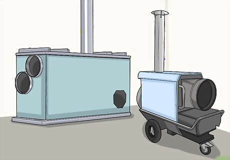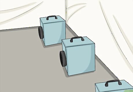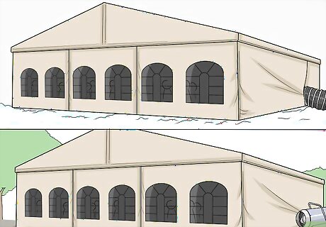 Choose fans that can operate from the outside, directing the heat inward. The best type of heaters for marquees are indirect heaters that are placed outside the marquee, and are powered either by gas or diesel, with ducting that sends the warm air inside. Do not try to buy these heaters––this type of heater can be prohibitively expensive to buy. Instead, find a company that specializes in these heaters and hire them. The benefit of doing this is that you'll have the company's experts set it up and take care of it, and you won't have to worry about the heating during the event.