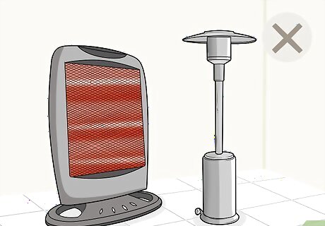 Know which heaters will not be suitable. Heating the outdoors requires a lot of power and the heater must have a powerful fan to be able to spread the warmth evenly and consistently across a wide area. The marquee has no insulation at all, so providing an even temperature across the marquee is dependent on the fans constantly working at a high rate. As such, the types of heaters that are not suitable include halogen heaters, patio heaters, cabinet heaters and table heaters, because none of these have internal fans. Do not use anything that runs cords across where people will be sitting, standing and walking in the marquee. That's a tripping hazard waiting to happen.