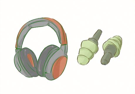Make sure that they have access to earplugs and/or headphones. These can be more effective (or a good addition to) covering their ears. White/brown noise, noise-cancelling headphones, and thick rugs can also minimize sound for them. Make sure the person can still hear some noise while wearing headphones or earplugs. If they can't hear anything at all, their safety might be at risk. If they don't need to listen to someone or something (e.g. they're riding in the car), music or white noise may help to block out other sounds. However, for some autistic people, this makes it worse. Ask them what would help. An autistic person with strong hearing may be able to hear you while wearing earplugs or headphones.Tip: If the person is also sensitive to touch, some noise-reducing earplugs or headphones might not work for them. Help them find something they can use that doesn't cause them distress.