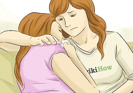 Offer deep pressure. This provides calming stimulation that allows them to handle touch better. Buy a weighted vest, blanket, or lap pad. (Large beanbags also work.) Brush them, or provide a brush so they can brush themselves. Give them a massage or a tight hug.