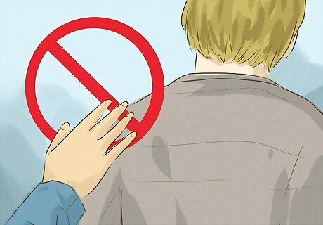 Avoid touching the autistic person without clear permission. With non-autistics, a tap on the shoulder is a great way to get attention. With autistic people, it can be very alarming. Make sure that they can see it coming, and that they are okay with it. Ask first: "Would you like a hug?" Or extend your arms to offer a hug, and see if they reciprocate. If you need to touch them, tell them first (e.g. "I'm going to help you get your coat off. Let's start with the shoulders"). Allow them to do things themselves if possible, like letting them wash and brush their hair, or wiping smudges or lint off their face or clothes. Never touch them from behind or without warning. Remember that sensitivity varies from day to day. One day, they might love a hug, and the next, it might be too much to handle. This says nothing about how much they care about you. Teach children to respect personal space and touch preferences.Tip: For some autistic people, even light hugs can be distressing or painful. If the autistic person is a family member or romantic partner, they may prefer to express affection through less intensive touches (like touching your shoulder) or through non-physical means.