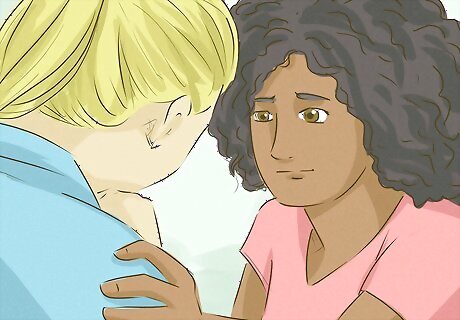Listen to your friend when they explain why they feel the way they do. A lot of intensely negative emotions are likely going through your friend’s mind if they are inclined to cut or to kill themself. While your friend is talking to you, don’t interrupt them. They may need to express themself and not ask for a solution. It is a good idea to listen to them carefully and be particularly caring and understanding towards them. Do not ask to see their scars, or check for other signs of “proof.” Self-harming is a very personal topic, and your friend may feel embarrassed. Instead, ask your friend to explain the feelings that they go through when they’re inclined to cut, self-harm, or when they think of suicide.