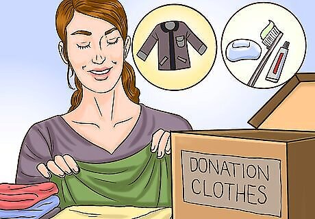 Donate clothing and personal care items. Donate clean and intact shirts, pants, jackets, sweaters, scarves, and suits. Personal care items like toothpaste, toothbrushes, deodorant, shampoo, soap, and feminine hygiene products are always needed at homeless shelters as well. Only donate new and unused personal care items, underwear, T-shirts, and socks. Because homeless veterans are in need of personal care items and clothing the most, these are great donations.