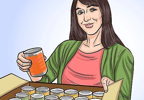 Donate nonperishable food items. Nonperishable food items include canned goods and pre-packaged foods with a clear expiration date printed on them. Donate canned goods like vegetables, fruits, tuna, and soup. Donate pre-packaged foods like macaroni and cheese, ramen, and other boxed foods. Because shelters need to restock their pantries on a daily basis, food donations are a great way to support your local homeless shelter.