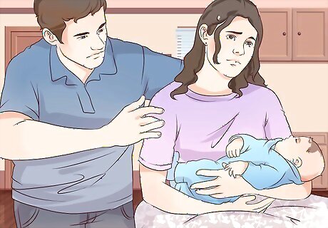Share equally. Parenting is a two person (or more) job. Make sure you do your part, but don't go overboard. By becoming an equal partner in your relationship, you can make the time after labor more positive. Especially in the first few weeks after the birth, a new mom may need a lot of time to recover. She may need frequent naps, be sore, and generally fatigued. At this time, remember all the work she did in the delivery room, and help her out. Try to be as involved with the baby as possible. The mother shouldn't be the only one getting up with the baby all night – you should also be present.