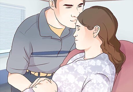Take classes before the birth. The best way to help before labor is to educate yourself with antenatal (before birth) classes. There are many kinds of classes available to expecting fathers and parents. Look into the kinds of classes available near you. If you find the idea of child birth scary, research shows that men who went though antenatal preparation, such as a class, had a more positive childbirth experience. Check your community center or park district. Ask your doctor. Contact a nearby college or university. Look for a class online.