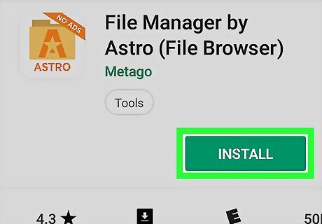 Install a file manager on your phone. Open your app store and look for one that will manage files, such as Astro File Manager. Once you’ve found one you think will work well, download it onto your phone. There are many free ones for you to choose from, including FX File Explorer, OI File Manager, and Total Commander.