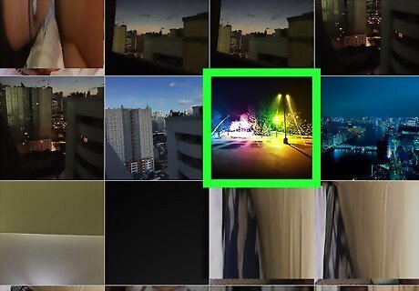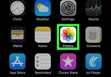Open the Photos app and click on the picture you want to hide. The Photos app, which looks similar to a rainbow flower, is one of the automatic apps that show up on your phone. Open the app and scroll until you find the picture you want to hide, selecting it with your finger. If you’re trying to hide multiple pictures, continue touching the pictures until they’re all selected.