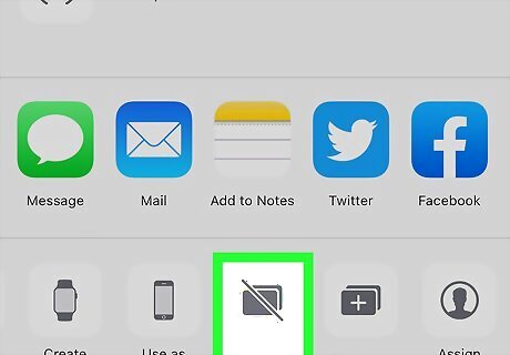 Scroll to the right until you see the Hide option. Once you tap the Share icon, a new row of icons will pop up on the bottom of the screen. Scroll to the right using your finger until you see Hide, with an icon of 2 rectangles with a slash going across them.