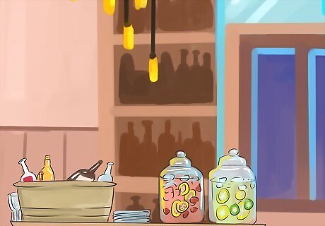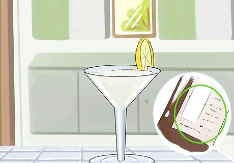 Set up a beverage station near the dining area before your guests arrive. Use a small table to house your cups, sodas, cocktails, wine, and other mixers. Place a bucket of ice and cocktail napkins on the table, as well. You can lay down a decorative tablecloth so the station looks nice. This way, your guests can easily refill their drinks or try your alcoholic beverage. If you’d like, ask your guests to label their glasses to easily keep track of them. You can leave out cocktail charms for glasses or a permanent marker for plastic cups.