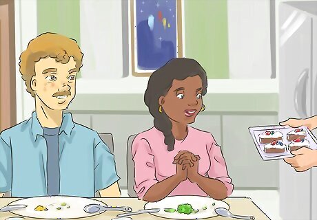 Offer dessert 20-45 minutes after everyone eats dinner. Dessert is the perfect finishing touch of a great meal. After everyone cleans their plate, bring out your dessert options. The time in between dinner and dessert can vary, based on you and your guests’ preferences. For example, your guests may be ready for dessert right after dinner, or they may be extremely full and need a few minutes to digest.