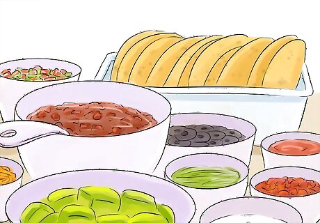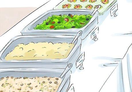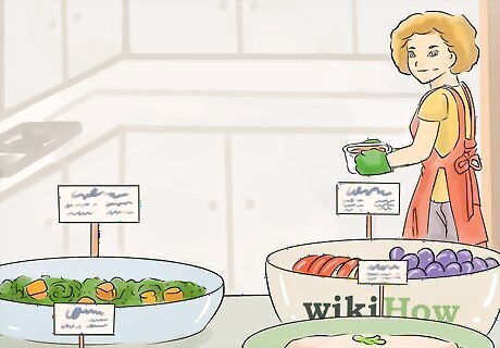 Arrange your food buffet-style so everyone can easily select their food. If you have space in your home, set up a buffet table and place all of the food on the table when it is ready. When it’s time to eat, ask your guests to serve themselves from the buffet table. This way, everyone can easily select the dishes that fit their dietary requirements. You can add a tablecloth, table runner, or centerpieces to decorate your spread. If you don’t have room for a buffet spread, you can place the dishes on your dining room table.