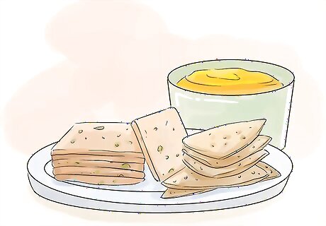 Prepare a few light, gluten-free appetizers. To find appetizer recipes, search online for “gluten-free appetizers.” If you want to purchase pre-made options, visit a local health food store. Pick 2-4 appetizers to share with your guests before you dig into the main course. For example, gluten-free garlic knots, gluten-free crackers and cheese, and gluten-free spinach dip are great ideas! Other ideas include buffalo chicken wings, kale chips, hummus and carrots, and fresh salsa and corn chips.