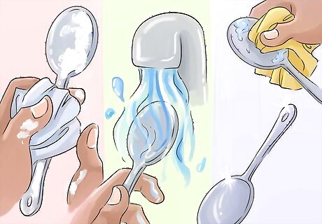 Clean your pots, utensils, and serving platters before using them. If a crumb of gluten winds up in the dish of someone with celiac disease, they can get sick. To avoid this, wash all of your pots, pans, mixing tools, and platters before you use them. Hold your item under warm water, and scrub it with dish soap and a sponge for 30-60 seconds. Then, rinse the item thoroughly. This way, no one will get sick! If you are using an electric mixer to prepare a dish, be sure to wash it thoroughly. It is best to use a separate mixer for gluten-free dishes. You can also use your dishwasher to clean your items.