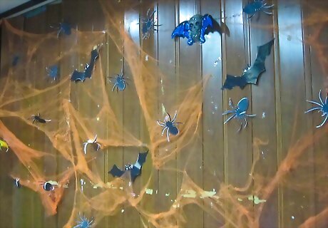 Hang up your decorations. Hang up black sheets on the walls using gorilla tape or tacks. There's no need to cover the ceiling, because you can turn the lights off and put up strobe lights. Get fog machines for added creepiness. You can cover your furniture with black sheets and sprinkle flour on them to make the room look old and dusty.