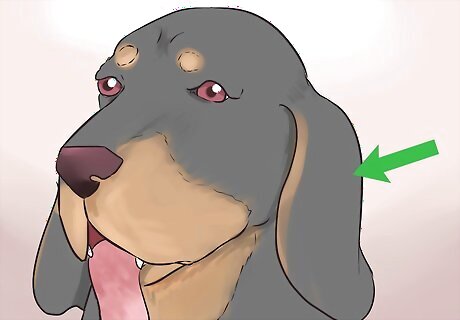Look for long, floppy ears. Like other members of the hound family, the black and tan coonhound has distinctively long ears. These floppy ears hang down below the dog’s jaw and flap as the animal runs. The ears are black, like much of its body, and improve the dog’s sense of smell by wafting the scent towards its nose.