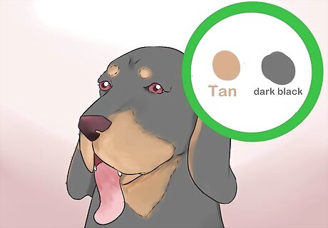 Look for the distinctive black and tan coloring. As its name might imply, the black and tan coonhound’s coat is a dark black with tan accents that can be found on its face, neck, legs, and chest. Most black and tan coonhounds have distinctive tan spots above their eyes called “pumpkin seeds.” A black and tan coonhound’s coat will be short and dense.